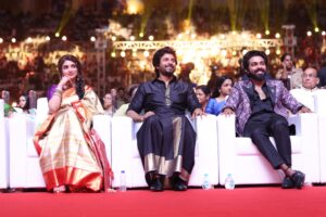 எனது பயணத்தில் துணை நின்ற அனைவருக்கும் நன்றி. முதல் படம் கொடுத்த வசந்த பாலனுக்கும், 100வது படம் கொடுத்த சுதாவுக்கும் நன்றி. எனக்கு முதல் தேசிய விருதை வாங்கிக் கொடுத்த சுதாவுக்கும் நன்றிக் கடனாகவே பராசக்தி படத்தை அவருக்காக செய்தோம். இந்த படத்தில் ஒரு முக்கியமான விஷயம் ஒன்றை ஒளித்து வைத்து வைத்துள்ளோம். அதை பொத்தி பொத்தி பாதுகாத்து வருகிறோம். இந்த படம் நிச்சயம் உங்களுக்கு நல்ல அனுபவத்தை கொடுக்கும். நீண்ட காத்திருப்புக்கு பின்னரே எனக்கு தேசிய விருது கிடைத்தது. வெயில், ஆயிரத்தில் ஒருவன், அசுரன் என பல படங்களில் தேசிய விருது தவறிதாக பலர் கேட்டார்கள். கடைசியில் சுதா கொங்கராவின் சூரரைப்போற்று படத்தில் எனக்கு தேசிய விருது கிடைத்தது. ஒரு சகோதரியின் மூலம் தேசிய விருது கிடைத்ததாக பெருமை கொள்கிறேன்.