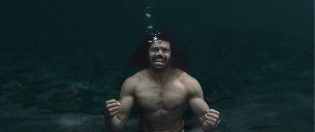 உண்மை தான். அந்த ஆழத்தில் உடலில் ஆடையின்றி நடிக்கும்போது, உறைந்த குளிருக்கு எந்த வெளிப்படையான உடல் எதிர்வினையும் தெரியாமல் இருக்க, அதே நேரத்தில் கேமரா முழுமையாக நம்பும் அளவிற்கு நடிப்பையும் வழங்க, ஆர்யா முழுமையான உடல் கட்டுப்பாட்டைப் பேண வேண்டியிருந்தது.