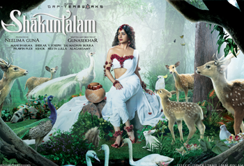 தற்போது இப்படத்தின் தயாரிப்பாளர்கள் சாகுந்தலம் படத்தில் சமந்தாவின்  தோற்றத்தை வெளியிட்டுள்ளனர். போஸ்டரில் சமந்தா நேர்த்தியான தோற்றத்தில் பறவைகள் மற்றும் விலங்குகளால் சூழப்பட்ட காட்டில் அமர்ந்திருக்கிறார். சமந்தா எங்கோ ஆர்வமாகப் பார்க்கிறார், காட்டில் அவருடன் இருக்கும் தோழமைகள் அவரை  பிரமிப்புடன் பார்க்கிறார்கள். இந்த போஸ்டர் ரசிகர்களின் ஆர்வத்தை தூண்டும்படி அமைந்துள்ளது.